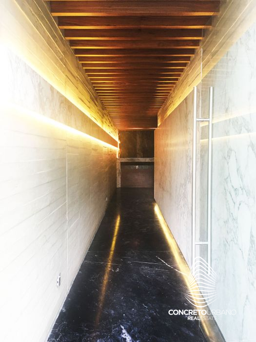 Gran diseño arquitectónico, detalles en cada espacio, muros de concreto, vigas de acero, acabados de lujo, placas completas de mármol en pasillos.